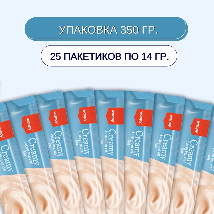 Wanpy Cat Лакомство для кошек «Нежное пюре» из тунца и креветками 25 шт. х14 г
