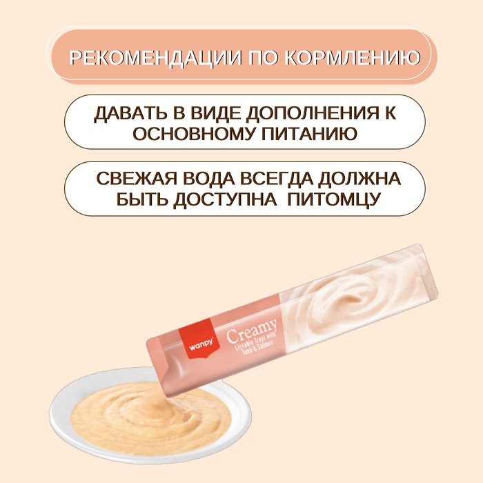 Wanpy Cat Лакомство для кошек «Нежное пюре» из тунца и гребешка 70 г
