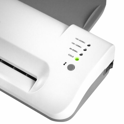 Данная модель обладает широким диапазоном используемых пленок, что обычно характерно для высокотехнологичных и дорогостоящих моделей ламинаторов, однако BRAUBERG SILVER MAX A4 можно приобрести при значительно более доступной цене. Способен заламинировать документы различных размеров - от визитки до листа формата А4. Прогревается за 3 минуты. Ламинирует 1 документ формата А4 в пакетах 2х60, 2x75, 2x80, 2x100, 2х125, 2х150, 2х175 и 2х200 мкм за 55 секунд. Кроме горячего ламинирования, данная модель оснащена также функцией холодного ламинирования. Функция антизамятия реализуется рычагом разжима валов, расположенным с обратной стороны ламинатора, т.е. пользователю нужно одной рукой удерживать рычаг с обратной стороны устройства, а второй рукой потянуть замятый лист на себя.