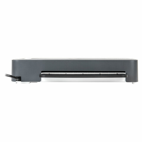 Отдельно стоит отметить встроенный в заднюю часть корпуса откидной лоток. Вам не придется его судорожно искать и постоянно устанавливать перед началом работы. Встроенный лоток предназначен для улучшения качества ламинирования. Благодаря ему документы на выходе из ламинатора будут оставаться ровными.