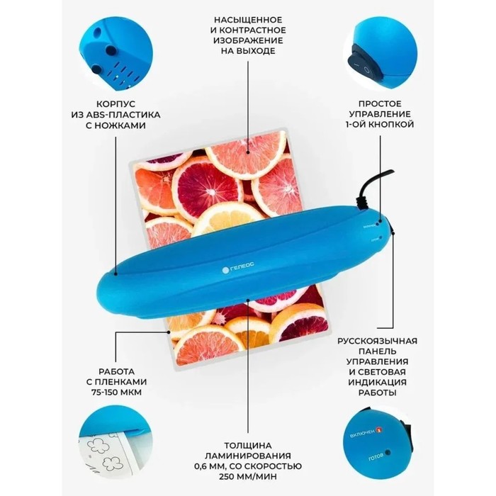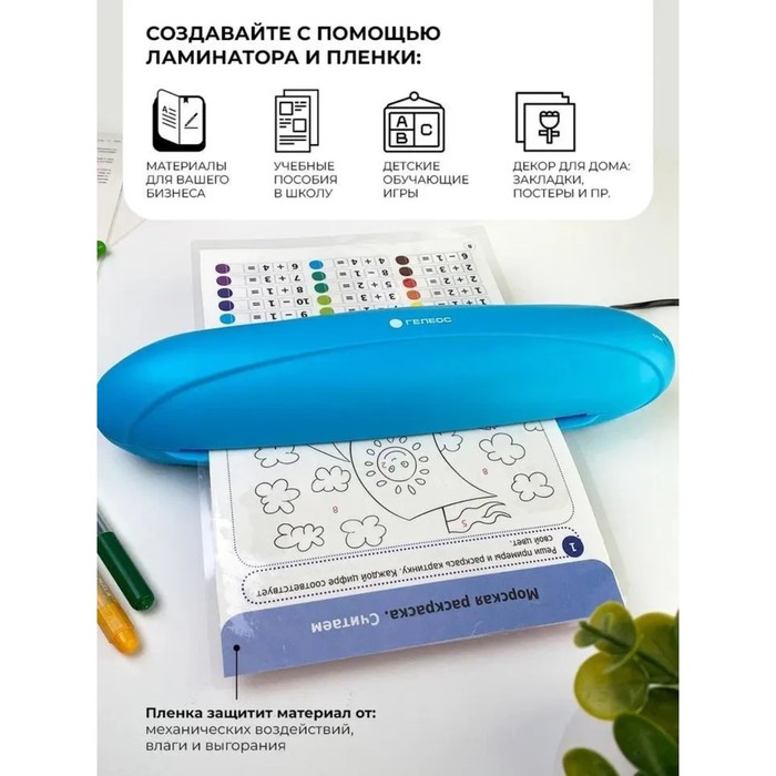 Ламинатор A4 75-150 мкм, 2 вала, скорость 25 см/мин, Гелеос Радуга, синий "ЛМА4РС"