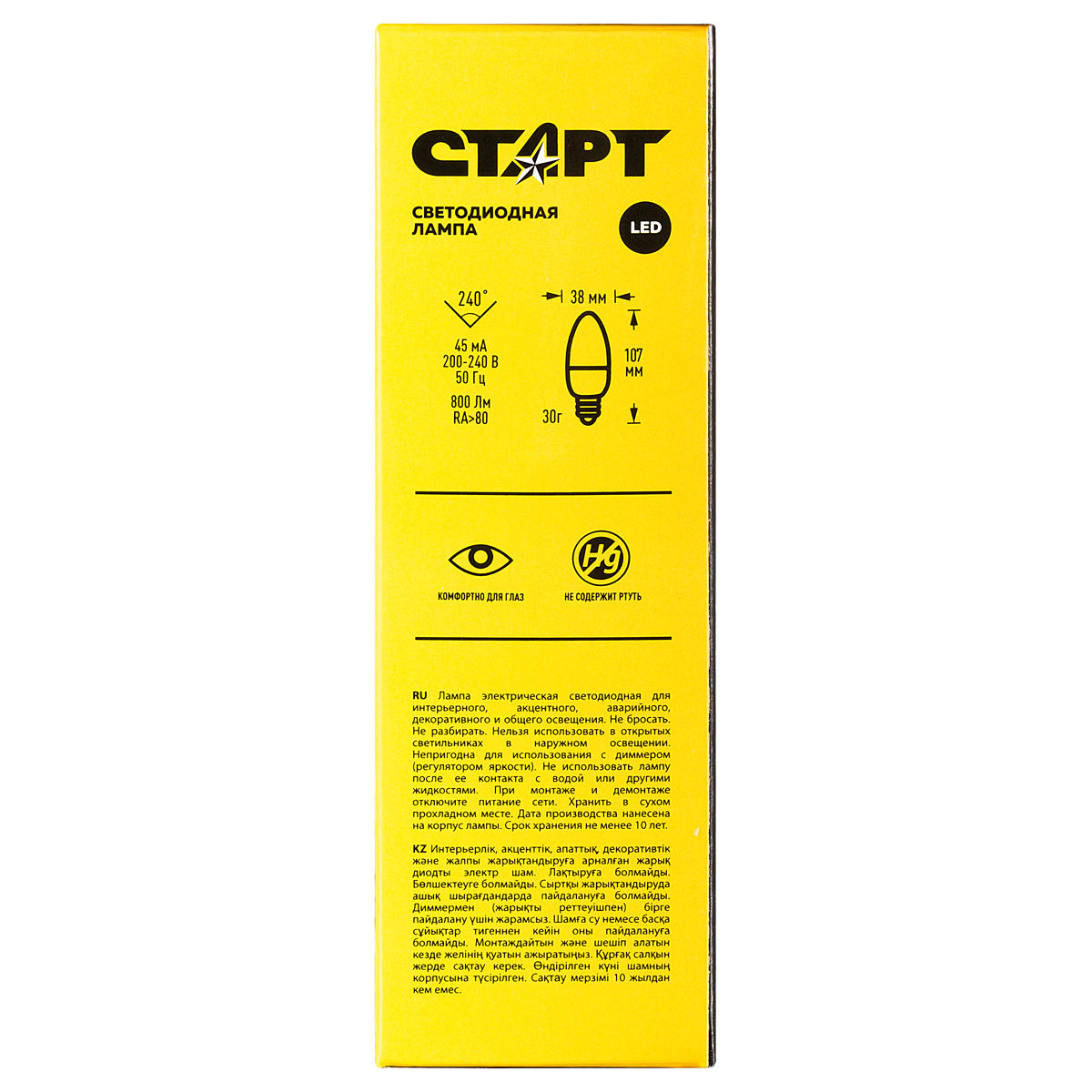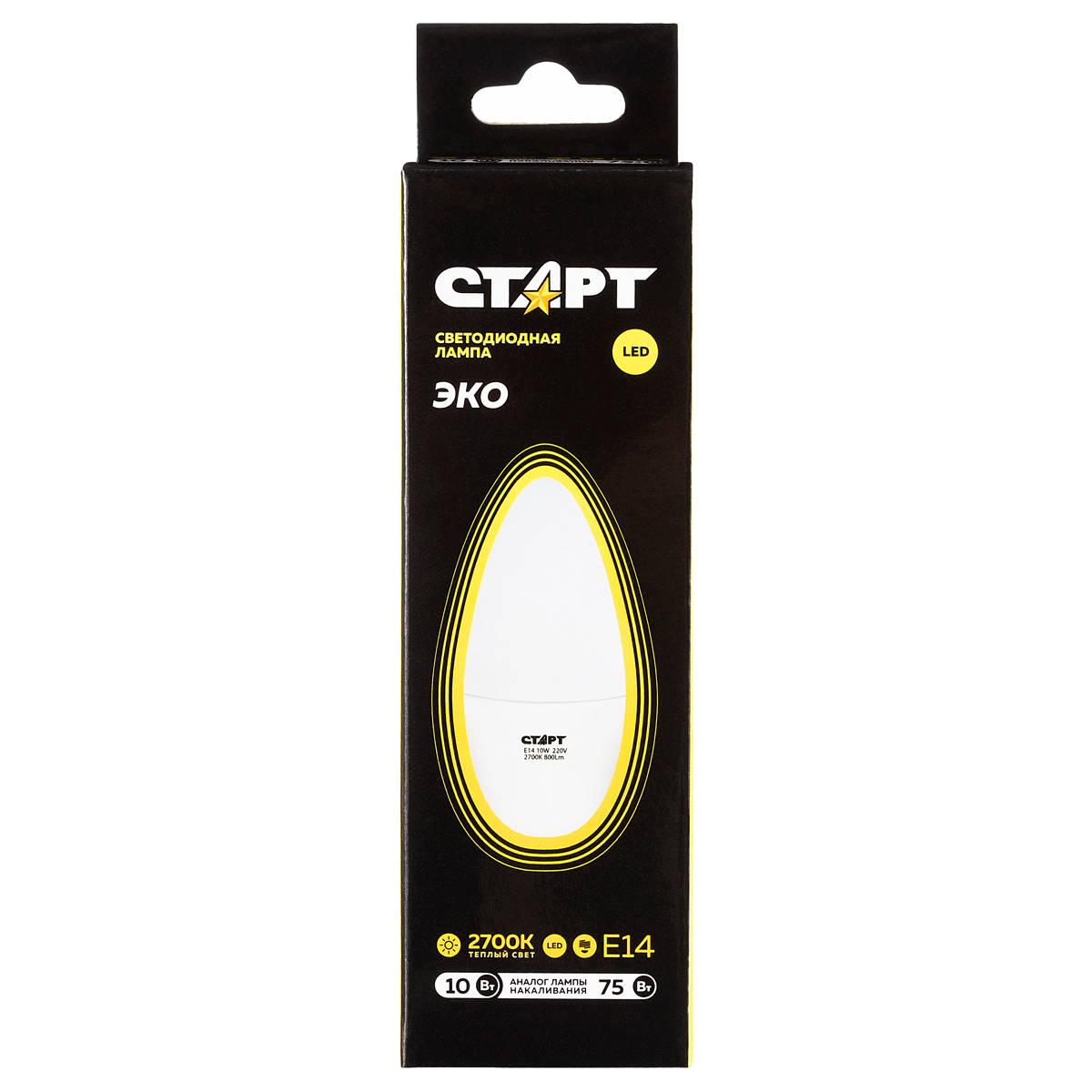 Светодиодная лампа СТАРТ – оптимальный источник основного или локального освещения в помещениях. Также подходит для декорирования и создания световых зон.Низкое энергопотребление, срок службы и надежность— главные преимущества светодиодных ламп.<br/><br/><br/>Эстетика и удобство использования<br/>Лампа выполнена в форме свечи и подходит к любым люстрам, настенным светильниками ночникам с цоколем Е14. Благодаря встроенной защите лампа не чувствительна к перепадам напряжения. <br/>Герметичность плафона позволяет использовать осветительный прибор в условиях температурных перепадов и повышенной влажности. Цвет свечения –теплый, комфортный для глаз.<br/><br/>Экономия<br/>Использование светодиодной лампы СТАРТ на 90% экономичнее по сравнению с традиционными лампами накаливания. Срок службы составляет 25 000 часов.<br/>Повсеместное использование светодиодных ламп в жилом или коммерческом помещении позволяет значительно снизить расходы на электроэнергию.<br/><br/>Безопасность<br/>Использование ламп в домашних условиях соответствует правилам и нормам безопасности. <br/>Лампа не перегревается и может быть использована в спальнях и детских комнатах.<br/>Элемент освещения произведен из экологически чистых материалов и по окончанию срока эксплуатации лампа может быть утилизирована без специальных условий.