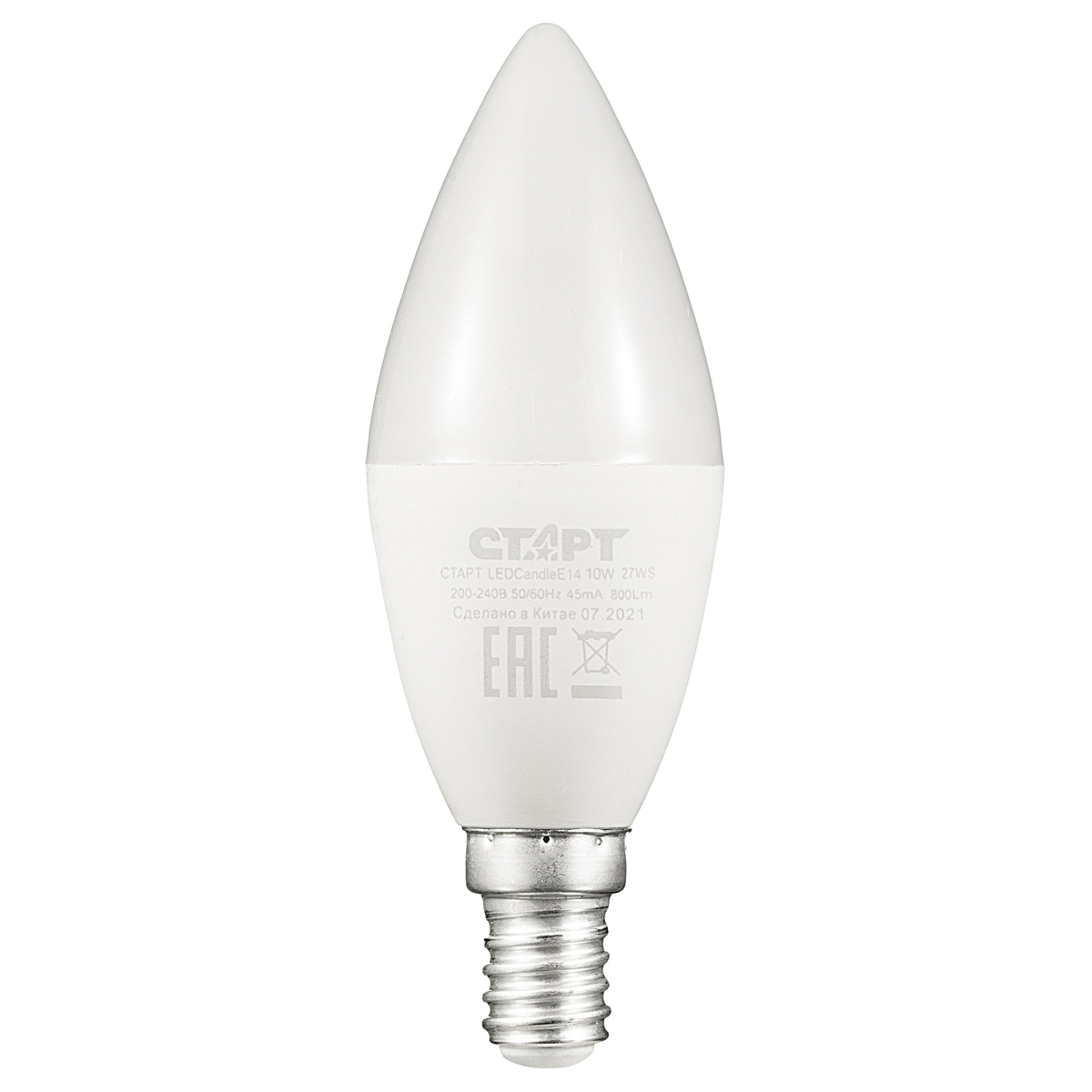 Лампа светодиодная Старт LED, серия "WS" 10W40, тип С "свеча", E14, 4000К, нейтральный свет, 25000ч