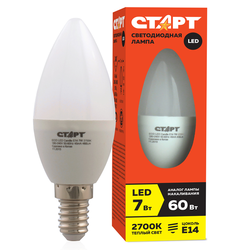 Светодиодные лампы СТАРТ общего назначения. Предназначены для замены традиционных ламп накаливания, а также компактных люминесцентных ламп в светильниках любых типов, использующих данные лампы.