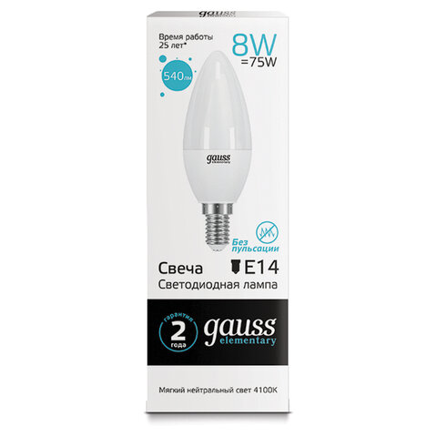 Лампа светодиодная GAUSS подойдёт как для домашнего, так и для коммерческого использования. Такой тип освещения прекрасно смотрится в светильниках без плафонов или устанавливается в люстры и бра.