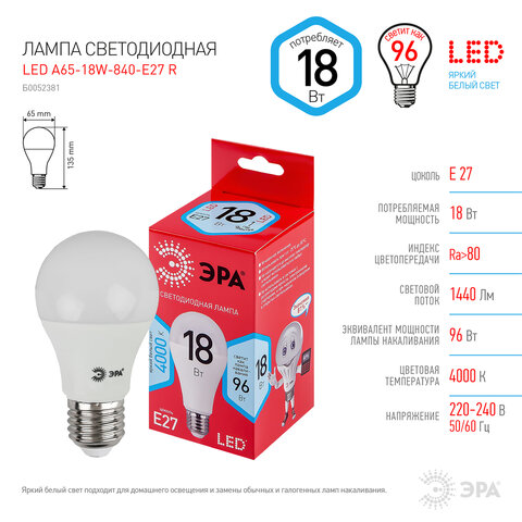 | Мощность эквивалентной по световому потоку лампы накаливания | 96 |