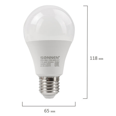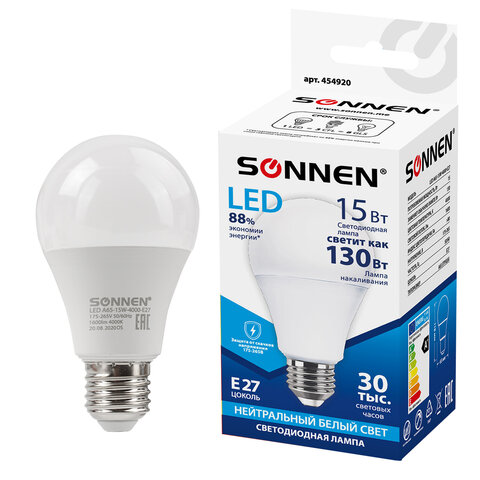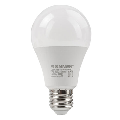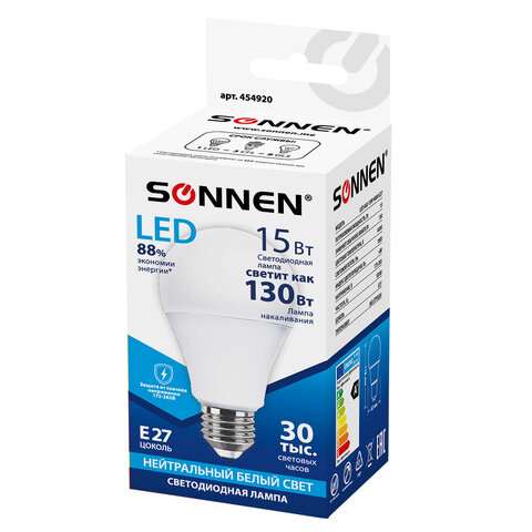 Светодиодная лампа SONNEN компактного размера. Срок службы лампы составляет не менее 30000 часов, что примерно в 30 раз больше, чем у обычной лампы накаливания.
