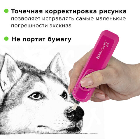 Электрический ластик BRAUBERG "JET" идеален для корректировки чертежа, эскиза или скетча без каких-либо усилий, не причиняет вреда бумаге.