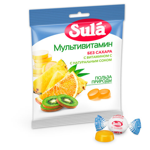 В их составе нет сахара, вместо него используется сорбит, который можно употреблять диабетикам. Леденцы «Мультивитамин» представляют собой карамельки различных вкусов: апельсина, ананаса, банана и киви.