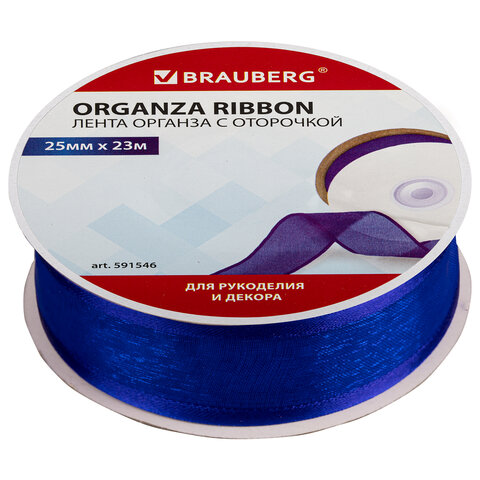Лента органза с оторочкой ширина 25 мм, длина 23 м, синяя, BRAUBERG, 591546