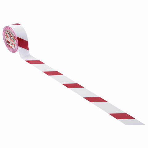 Лента сигнальная красно-белая, 75 мм х 200 м, BRAUBERG "Грандмастер", основа полиэтилен, 604892