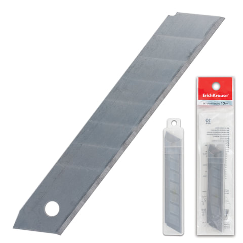 Лезвия для ножей 18 мм КОМПЛЕКТ 10 ШТ., толщина лезвия 0,5 мм, в пластиковом пенале, ERICH KRAUSE, 19274