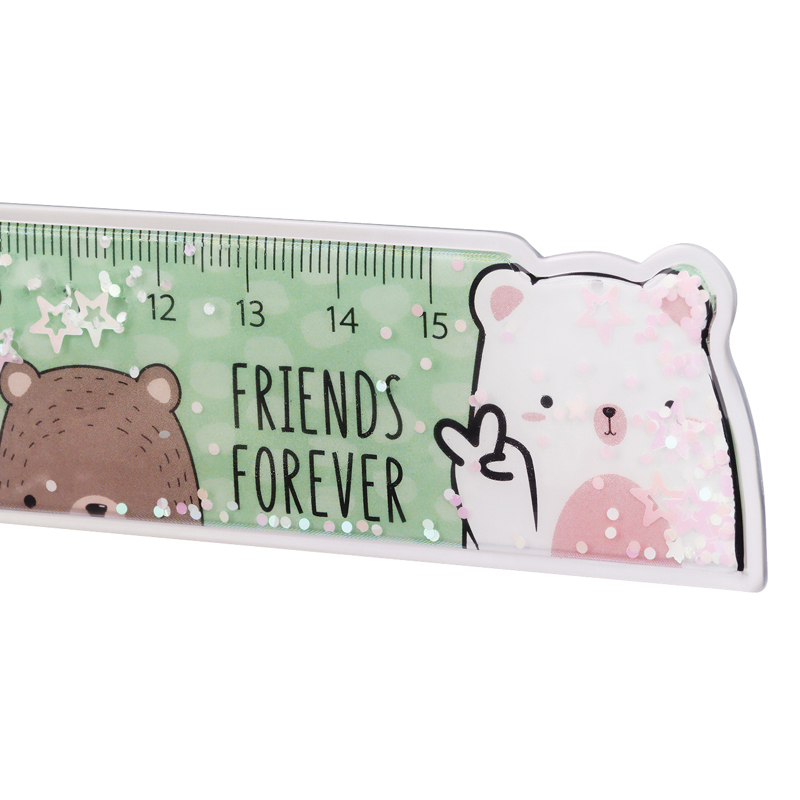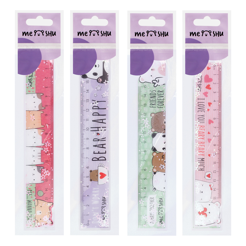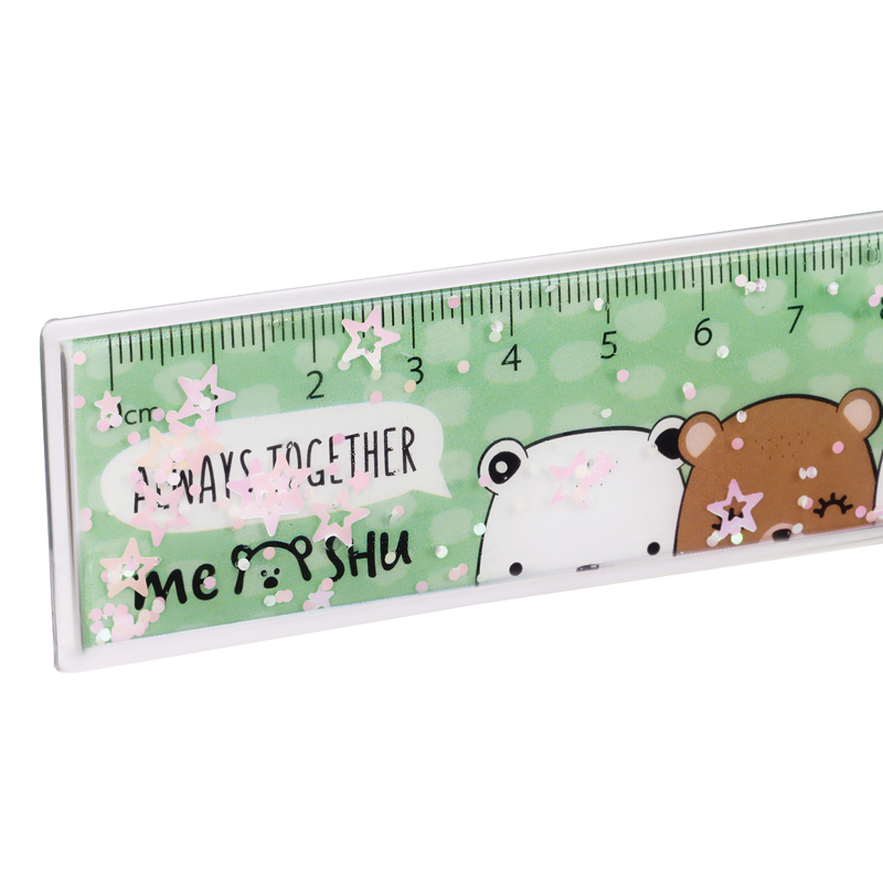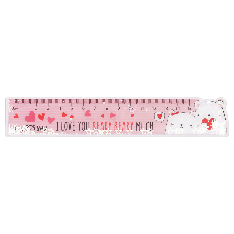 Линейка MESHU c блестками Beary beary создаст прекрасное настроение для учебы и творчества. Длина шкалы 15 см, ширина линейки – 35 мм. Гибкая линейка изготовлена из ПВХ. Представлено 4 милых дизайна с медвежатами. Линейка предназначена для чертежных работ. Упакована в пакет. <br/>• Длина шкалы: 15 см;<br/>• Материал: ПВХ.