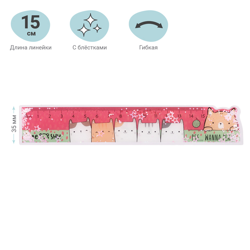 Линейка пластиковая 15 см, FUNSTER, "КОТЫ", ассорти, дисплей, 210918