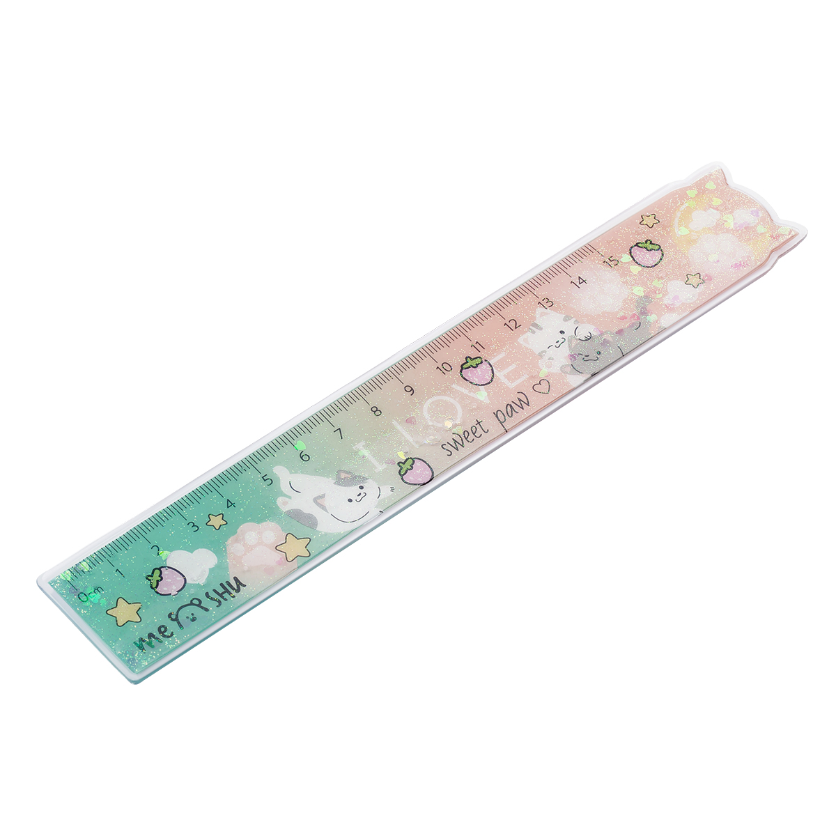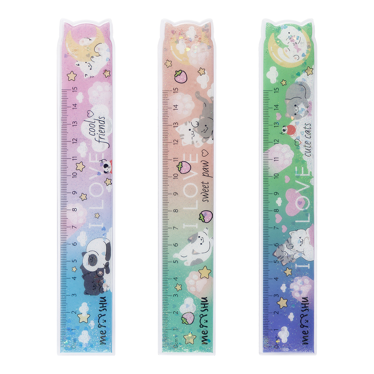 Линейка MESHU c блёстками Cute Cats создаст прекрасное настроение для учебы и творчества. Длина шкалы составляет 15 см, ширина линейки – 35 мм. Гибкая линейка изготовлена из ПВХ. Представлено 3 милых дизайна с котятами. Линейка предназначена для чертежных работ. Упакована в пакет. <br/>• Длина шкалы: 15 см;<br/>• Материал: ПВХ.