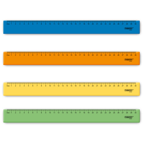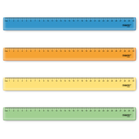 Линейка пластик 30 см ПИФАГОР, прозрачная, тонированная, 210841