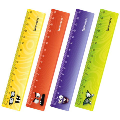 Линейка пластиковая 15 см BRAUBERG "CUTE MONSTERS", с печатью, ассорти, 210866