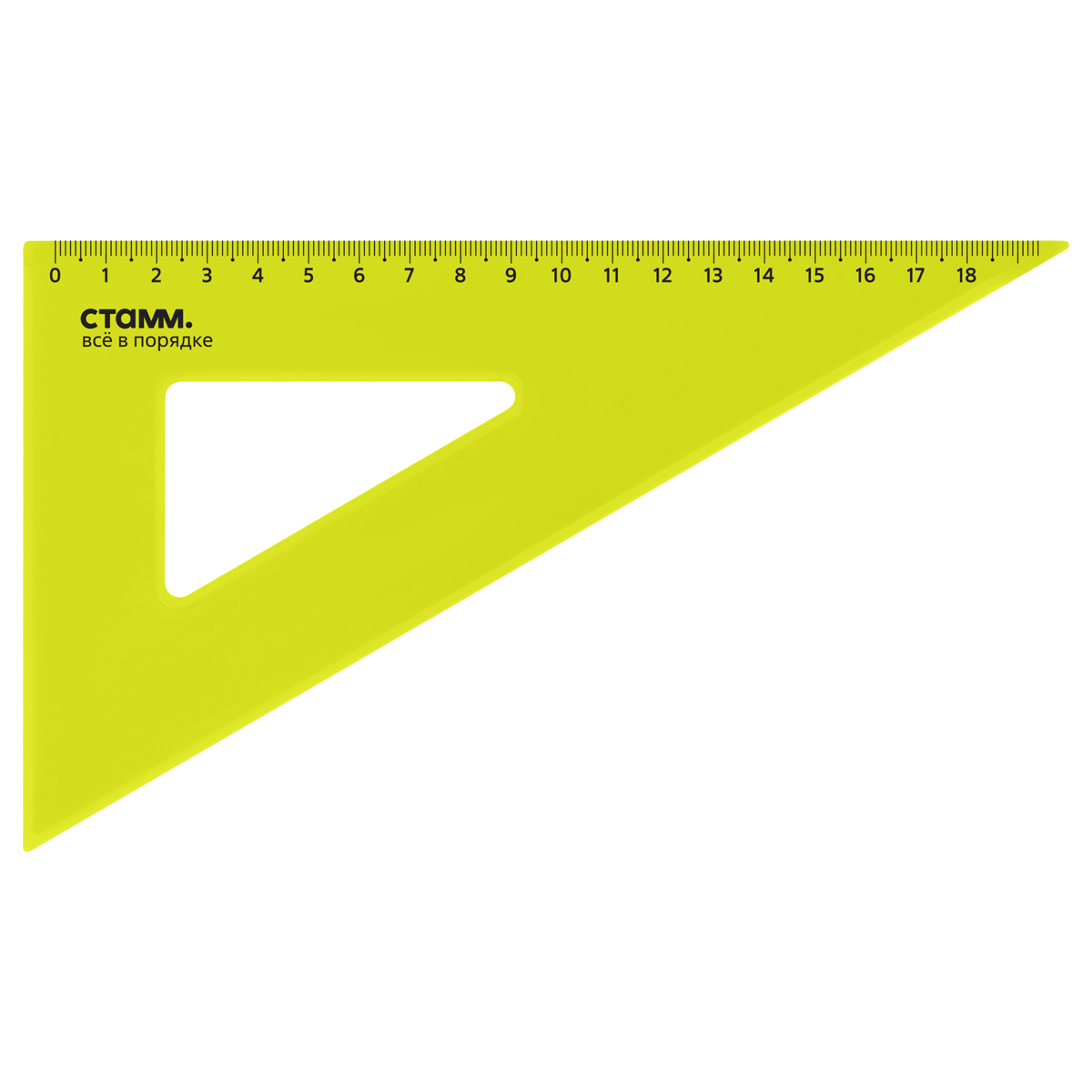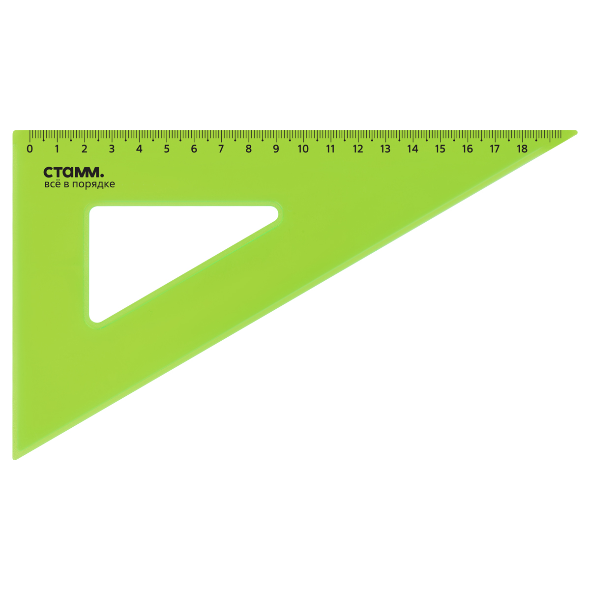 Треугольник СТАММ NEON Cristal – незаменим для чертёжных и измерительных работ. Угол изделия – 30°, длина шкалы – 18 см. Треугольник имеет чёткую напечатанную миллиметровую шкалу и гладкую глянцевую поверхность. Представлен в ярких неоновых цветах ассорти. <br/>• Материал: полистирол;<br/>• Цвет: ассорти.