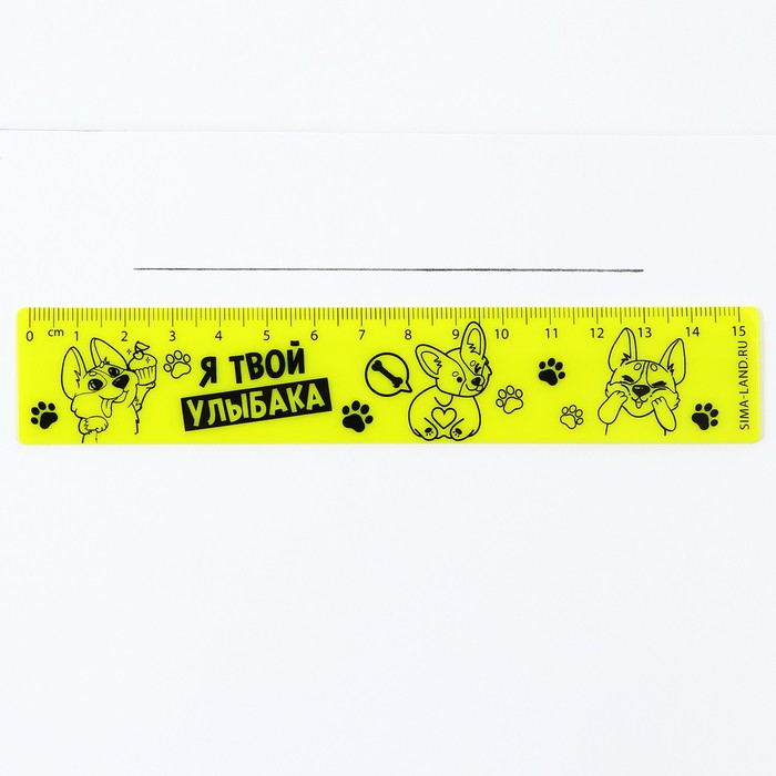 Линейка пластиковая 15 см в пакете с европодвесом (штрихкод на штуке)
