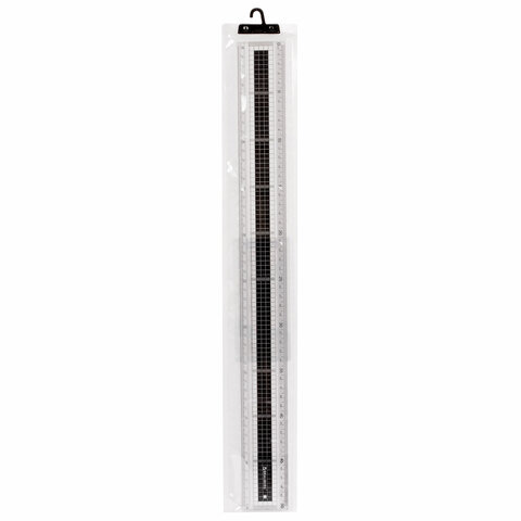 Линейка изготовлена из прозрачного прочного пластика. Длина шкалы составляет 50 см. Линейка обладает четкой разметкой, что делает ее удобной в использовании. Упакована в пакет с европодвесом.