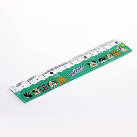 Линейка выполнена из прозрачного пластика с принтом в виде кошечек и собачек. Имеет безопасные закруглённые углы. Длина шкалы составляет 15 см. Линейка обладает четкой разметкой, что делает ее удобной в использовании. Упакована в пакет с европодвесом.