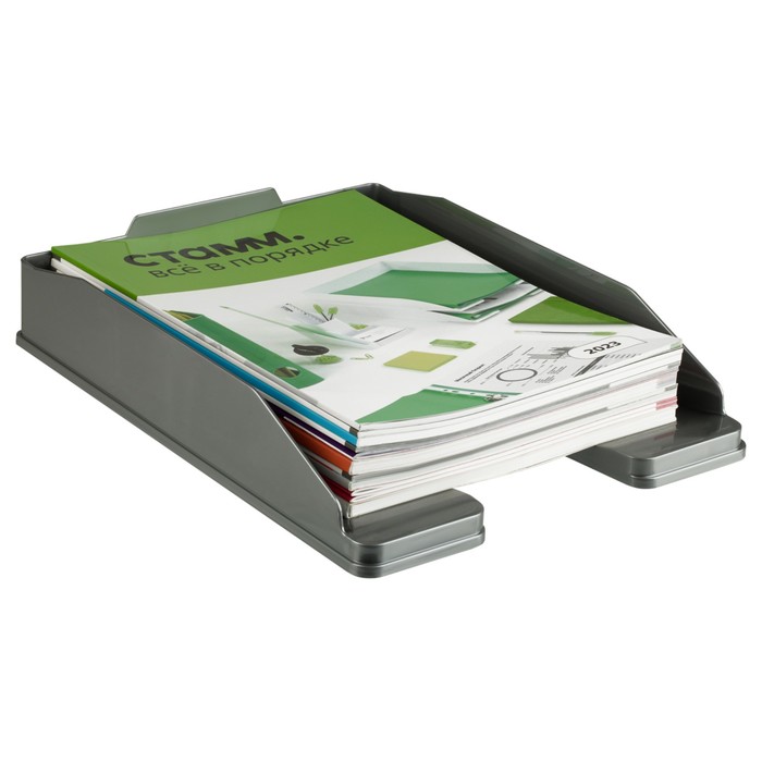 Лоток для бумаг вертикальный Стамм "Дельта", ширина 85 мм, серый