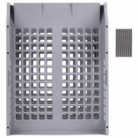 Лоток горизонтальный для бумаг с пазами, А4 (360х270х75 мм), сетчатый, серый, ЛТ75