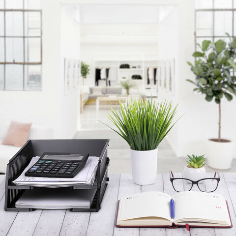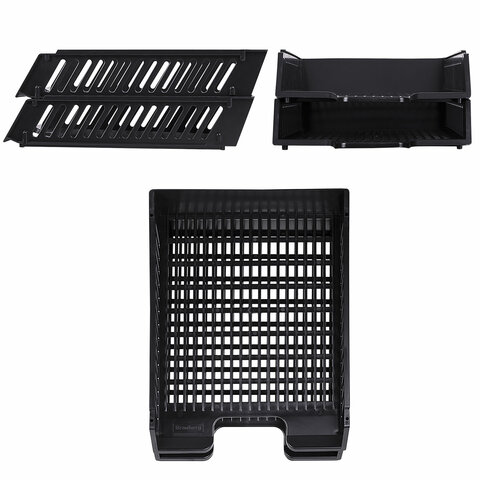 Лоток горизонтальный для бумаг BRAUBERG ECO, 330х245х65 мм, сетчатый, черный, 239011
