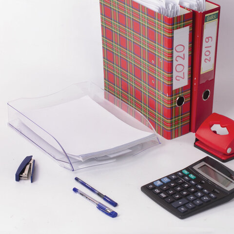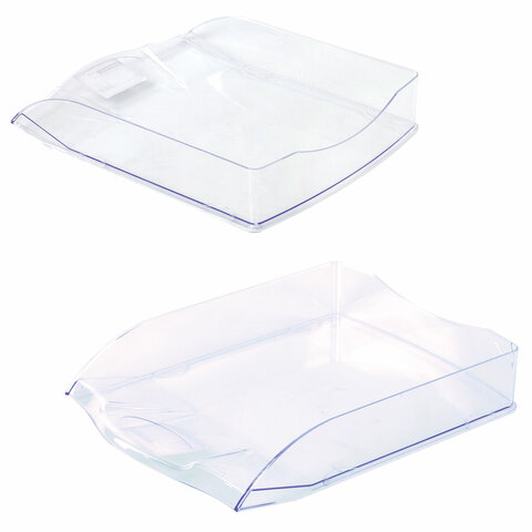 Лоток горизонтальный для бумаг BRAUBERG "Standard", 350х253х65 мм, прозрачный, 238349