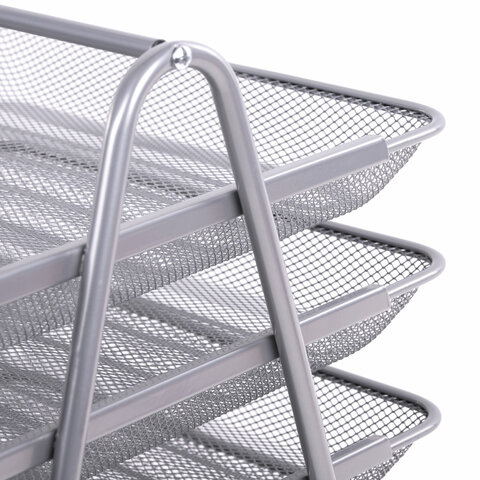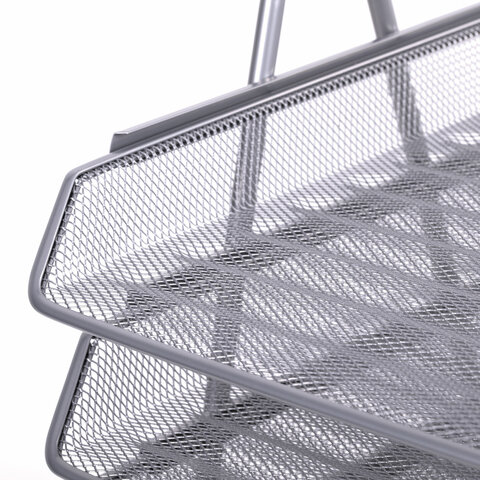 Лоток горизонтальный для бумаг с пазами, А4 (360х270х75 мм), сетчатый, серый, ЛТ75