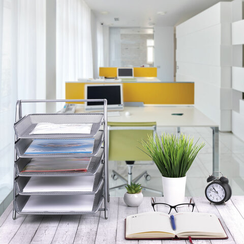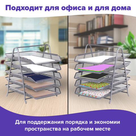 Горизонтальный пятисекционный лоток для бумаг BRAUBERG "Germanium" компактно сохранит на рабочем столе документацию, проспекты, каталоги и другую продукцию формата А4. Лотки могут использоваться отдельно от опоры.