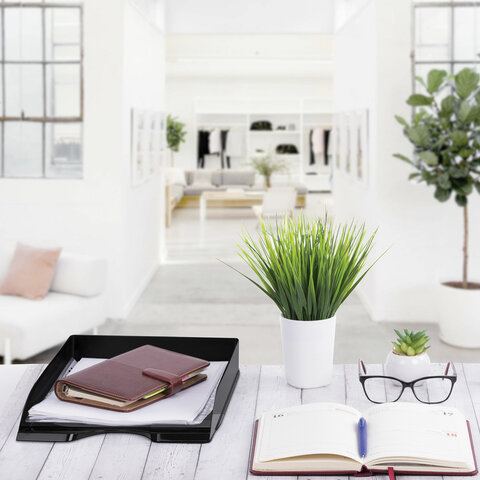 Классический лоток изготовлен из пластика черного цвета. Размер лотка - 315х250х60 мм. Обладает устойчивой конструкцией, благодаря которой удобен для хранения объемных документов и папок. Лотки можно устанавливать друг на друга.
