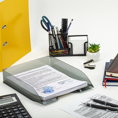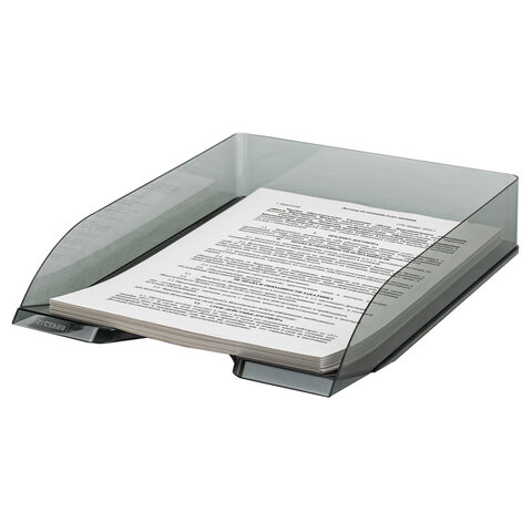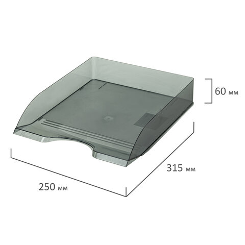 Лоток горизонтальный для бумаг BRAUBERG "Standard", 350х253х65 мм, тонированный серый, 238348