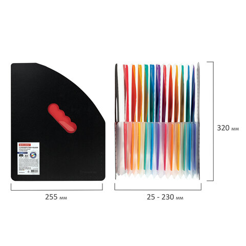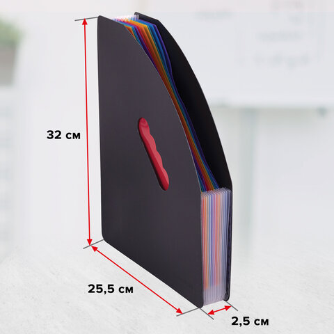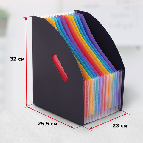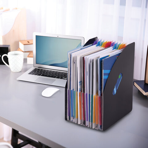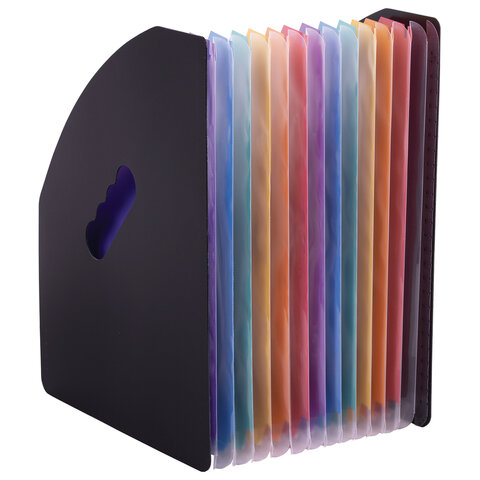 Изготовлен из качественного пластика толщиной 1 мм с фактурой под песок. Содержит 13 цветных отделений, которые позволяют структурировать документы. Легко складывается и расширяется до нужной ширины. Лоток представлен в солидном черном цвете.