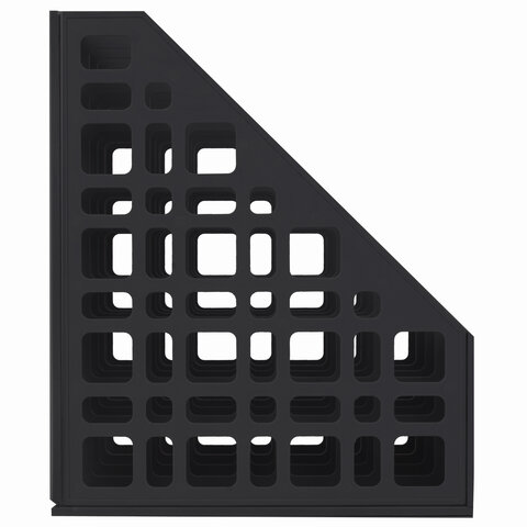 Выполнен в черном цвете с тремя отделениями. Предназначен для хранения каталогов и папок. Представляет собой прочную устойчивую сборную конструкцию с сетчатыми боковыми стенками. Размеры: высота - 295 мм, ширина - 240 мм, глубина - 250 мм.