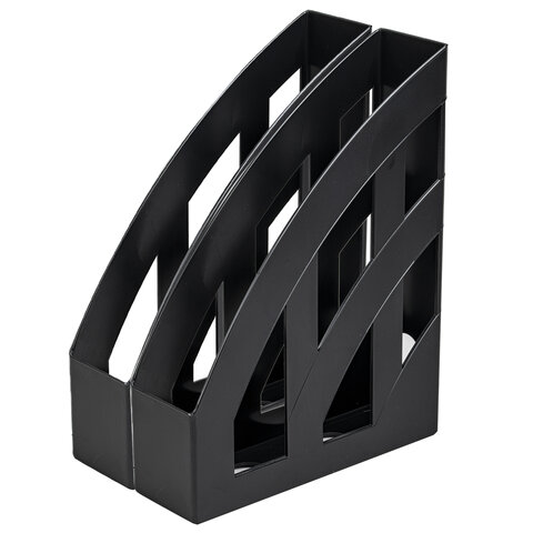 Лоток вертикальный для бумаг КОМПЛЕКТ 2 шт., BRAUBERG "Modern", 245х75х320 мм, черный, 238028