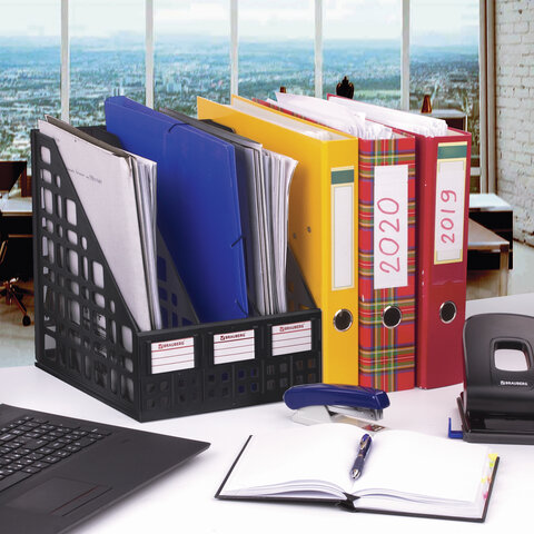 Вместительный вертикальный лоток BRAUBERG "MAXI-plus" для хранения каталогов и папок позволит поддержать порядок на рабочем месте и сэкономит пространство на столе и в шкафу.
