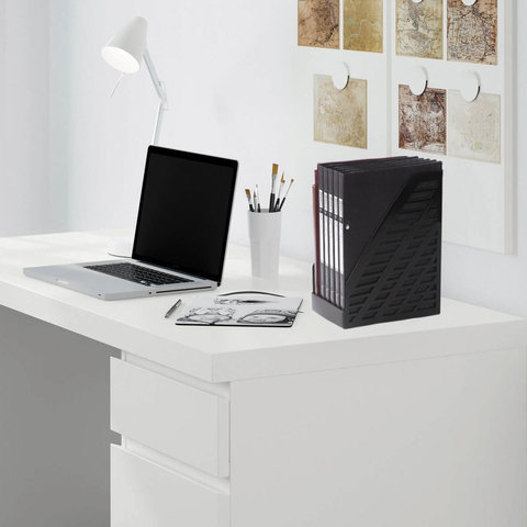 Вместительный вертикальный лоток BRAUBERG "MAXI-plus" для хранения каталогов и папок позволит поддержать порядок на рабочем месте и сэкономит пространство на столе и в шкафу.