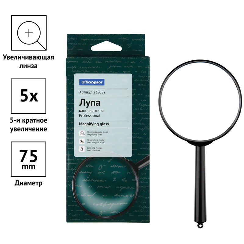 Лупа OfficeSpace, 100мм, 3-х кратное увеличение, карт. коробка, европодвес