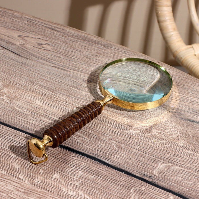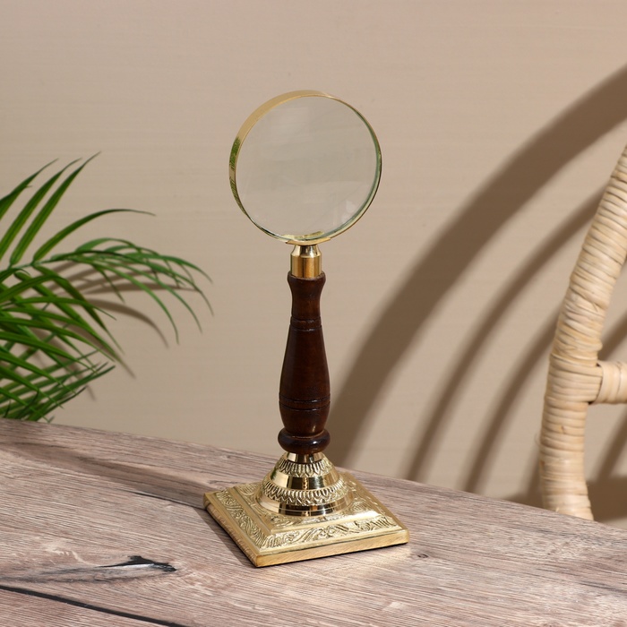 Лупа настольная сувенирная "Ари" дерево, латунь 25 см