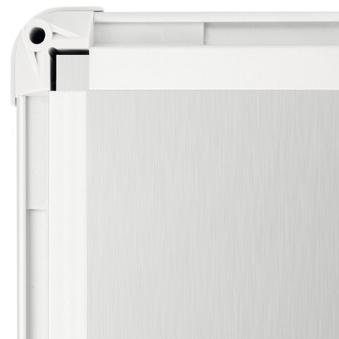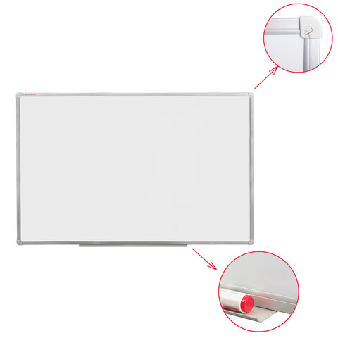 Лаковое покрытие предназначено для письма специальными маркерами для белой доски, а металлическая поверхность позволяет размещать информацию при помощи магнитов. Доска размером 100х180 см имеет укрепленные пластиковые уголки, которые позволяют скрыть места крепления к стене. Профиль придает изделию дополнительную прочность и современный стильный внешний вид. Полочка для аксессуаров и элементы крепления входят в комплект. При должном уходе за рабочей поверхностью доски при помощи чистящей жидкости-спрея и стирателей BRAUBERG поверхность магнитно-маркерной доски прослужит более 10 лет.