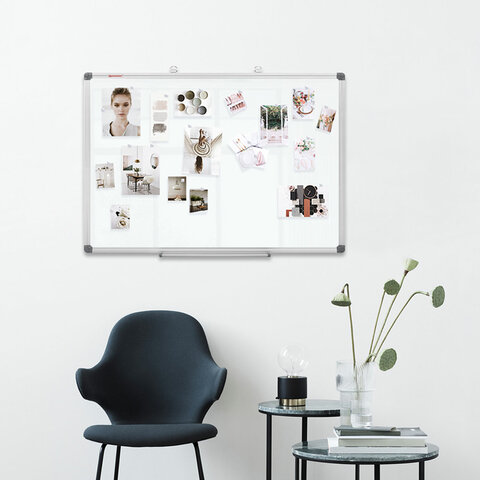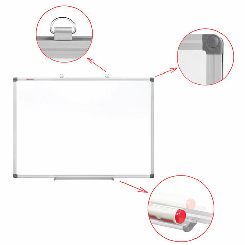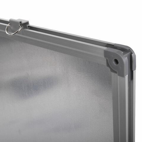 Лаковое покрытие предназначено для письма специальными маркерами для белой доски, а металлическая поверхность позволяет размещать информацию при помощи магнитов. Доска размером 60х90 см имеет укрепленные пластиковые уголки, которые позволяют скрыть места крепления к стене. Профиль придает изделию дополнительную прочность и современный стильный внешний вид. Элементы крепления входят в комплект. Для защиты рабочей поверхности доски на нее нанесена защитная пленка. Перед началом работы – удалить защитную пленку.