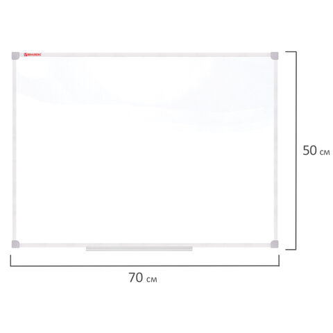 Лаковое покрытие предназначено для письма специальными маркерами для белой доски, а металлическая поверхность позволяет размещать информацию при помощи магнитов. Доска размером 70х50 см имеет укрепленные пластиковые уголки, которые позволяют скрыть места крепления к стене. Профиль доски выполнен из ПВХ белого цвета. Полочка для аксессуаров и элементы крепления входят в комплект. При должном уходе за рабочей поверхностью доски при помощи чистящей жидкости-спрея и стирателей BRAUBERG поверхность магнитно-маркерной доски прослужит более 10 лет.