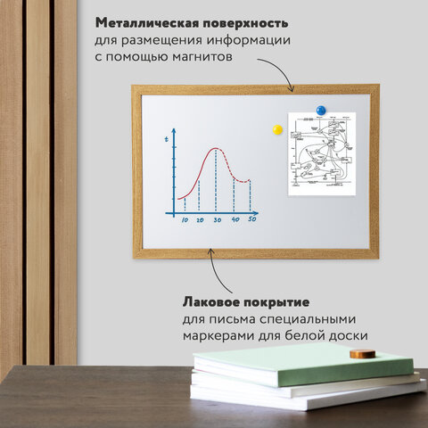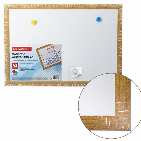 Доска магнитно-маркерная 45х60 см, деревянная рамка, BRAUBERG Standard, 238794