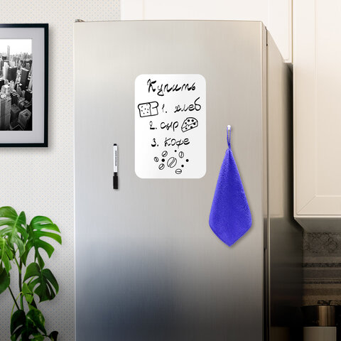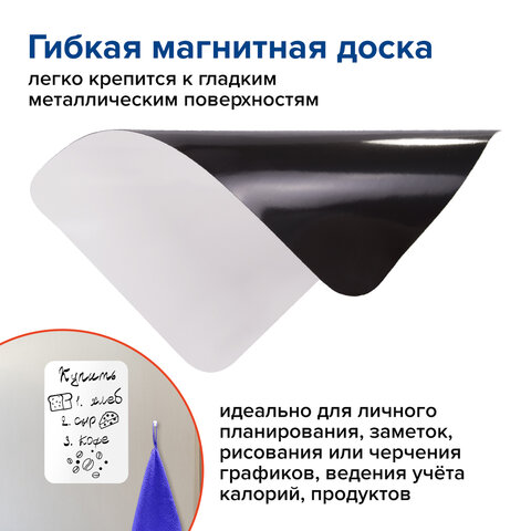 Магнитно-маркерная доска BRAUBERG на холодильник предназначена для письма маркерами для белых досок и меловыми маркерами. Это гибкая магнитная доска, которая легко крепится к гладким металлическим поверхностям и не требует дополнительной фиксации.