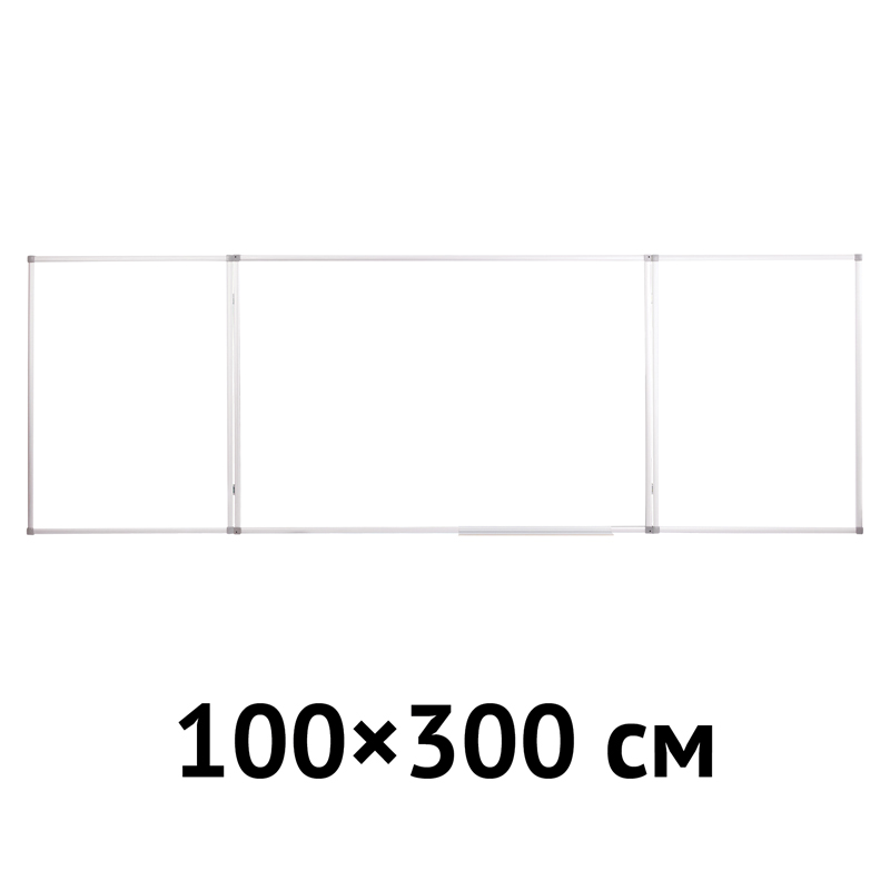 Уценка. Ограничений в дальнейшем использовании нет. Повреждения товара нет.<br/>Причина уценки: механические повреждения упаковки<br/><br/><br/>Трехсекционная магнитно-маркерная доска с пятью рабочими поверхностями предназначена для применения как в учебных заведениях, так и в офисах. Белое лаковое покрытие предназначено для письма маркерами. Металлическая поверхность позволяет размещать материал с информацией при помощи магнитов. Состоит из центральной секции шириной 150 см и двух боковых секций шириной 75 см каждая. Высота — 100 см<br/><br/>Уцененный товар подлежит возврату или обмену в случае обнаружения недостатков, о которых покупатель не был проинформирован перед покупкой