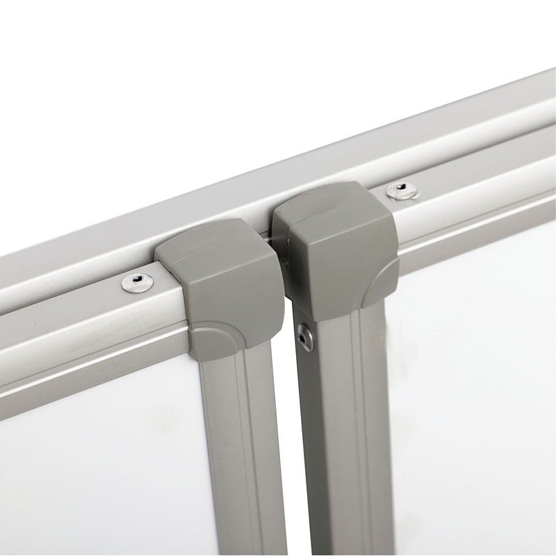 Трехсекционная магнитно-маркерная доска с пятью рабочими поверхностями предназначена для применения как в учебных заведениях, так и в офисах. Белое лаковое покрытие предназначено для письма маркерами. Металлическая поверхность позволяет размещать материал с информацией при помощи магнитов. Состоит из центральной секции шириной 150 см и двух боковых секций шириной 75 см каждая. Высота — 100 см