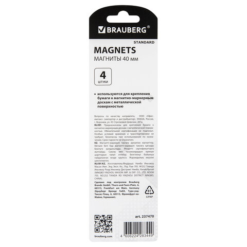 Стильные магниты BRAUBERG "STANDARD" помогут надежно прикрепить листы бумаги к магнитной поверхности досок, витрин и флипчартов.