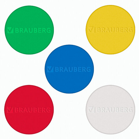 Диаметр магнитов составляет 30 мм. 5 штук в комплекте. Надежно удерживаются на любой железной или стальной поверхности. Магниты BRAUBERG "SUPER" отличаются повышенной удерживающей магнитной силой. Магниты круглой формы выполнены из пластика цветов ассорти. Поставляются в прозрачном пластиковом боксе с европодвесом.