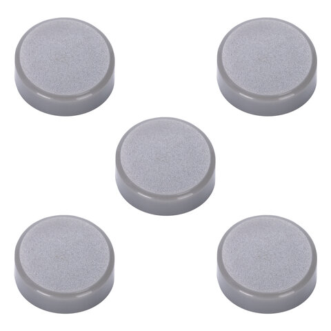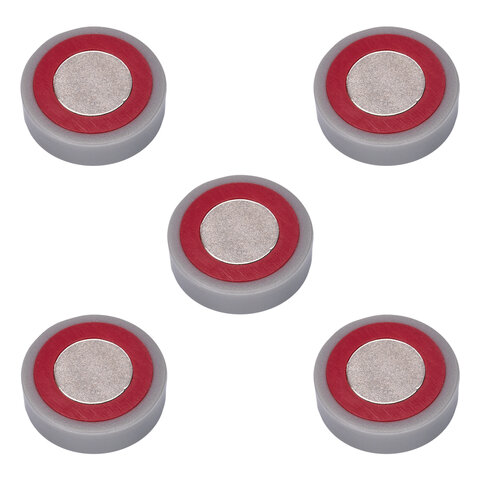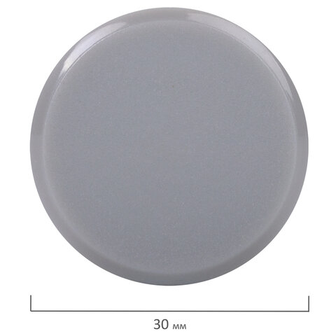 Магниты круглой формы стандартного диаметра - 30 мм, но с повышенной магнитной силой. Цвет - серый. Изготовлены из пластика. Упакованы в удобную и надежную блистерную упаковку с европодвесом. В комплекте 5 штук.